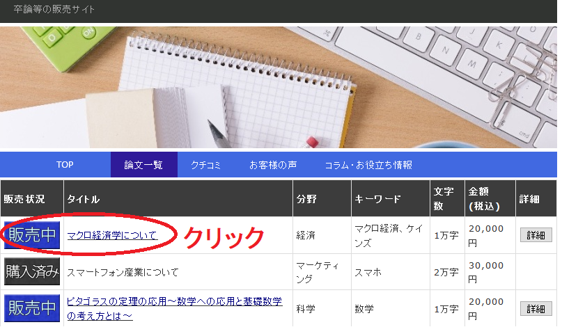 購入できる・販売している卒論の一覧はコチラ